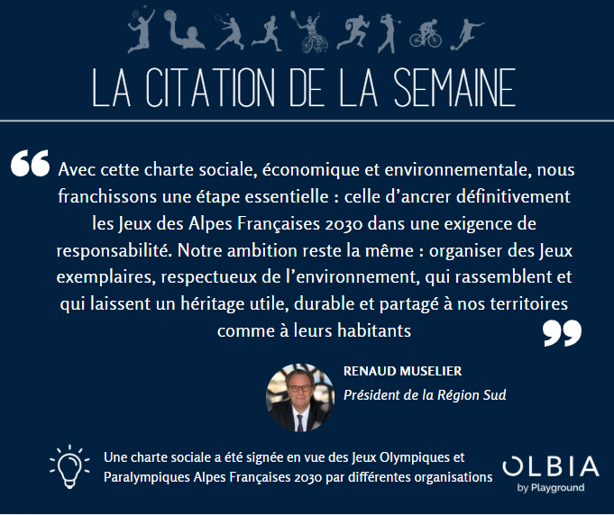François David a rejoint le COJOP Alpes Françaises 2030 en tant que directeur des technologies // La Solideo Alpes 2030 a lancé un accord cadre pour conduire les démarches de concertation et de participation du public aux JOP // Le COJOP Alpes françaises 2030 a dévoilé sa commission des athlètes // La charte sociale 2030 a été signée par les acteurs sociaux représentatif des Alpes Françaises 2030 et de la Solideo Alpes 2030 //